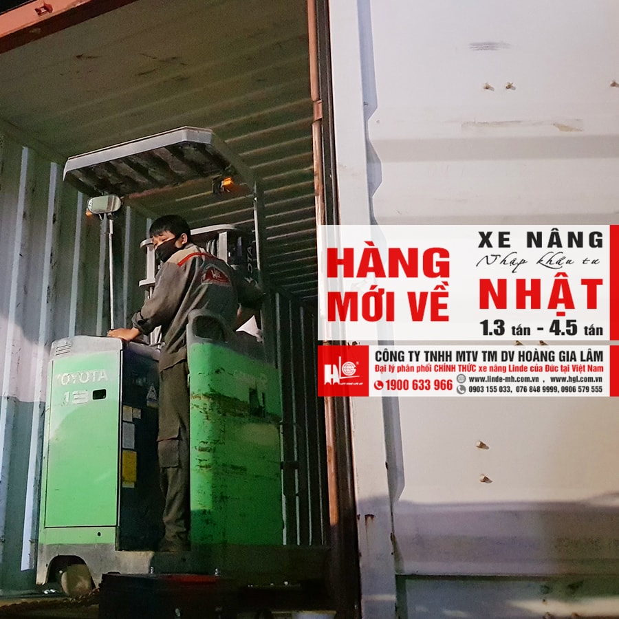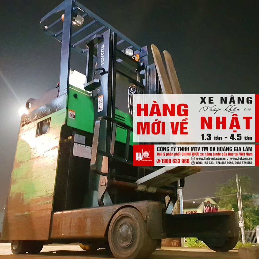 Hàng mới về 4.2020: 4 container xe nâng Nhật 1.3 tấn – 4.5 tấn. Lô hàng xe nâng đợt này bao gồm dòng xe nâng reach truck đứng lái và dòng xe nâng ngồi lái. Xe được nhập khẩu & phân phối bởi Công Ty TNHH MTV TM DV Hoàng Gia Lâm.