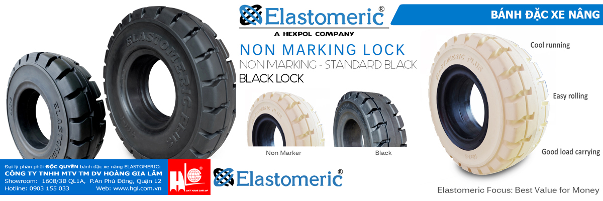 Bánh đặc xe nâng ELASTOMERIC được sản xuất bởi Elastomeric Engineering Co.,Ltd (Sri Lanka) là một công ty con của HEXPOL A.B (Thụy Điển) với hơn 1.000 nhân viên làm việc trong nhiều nhà máy. Công ty chuyên sử dụng hợp chất cao su và nhựa cao cấp để sản xuất bánh xe cho xe nâng và các loại xe khác.