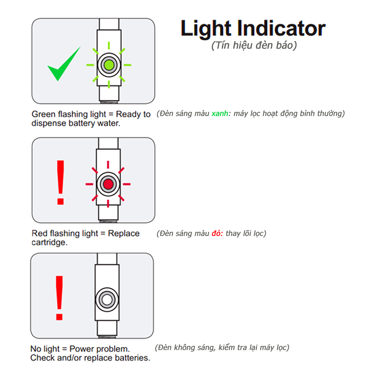. Rút miếng nhựa cách điện khi lắp đặt đèn với thiết bị lọc nước cất